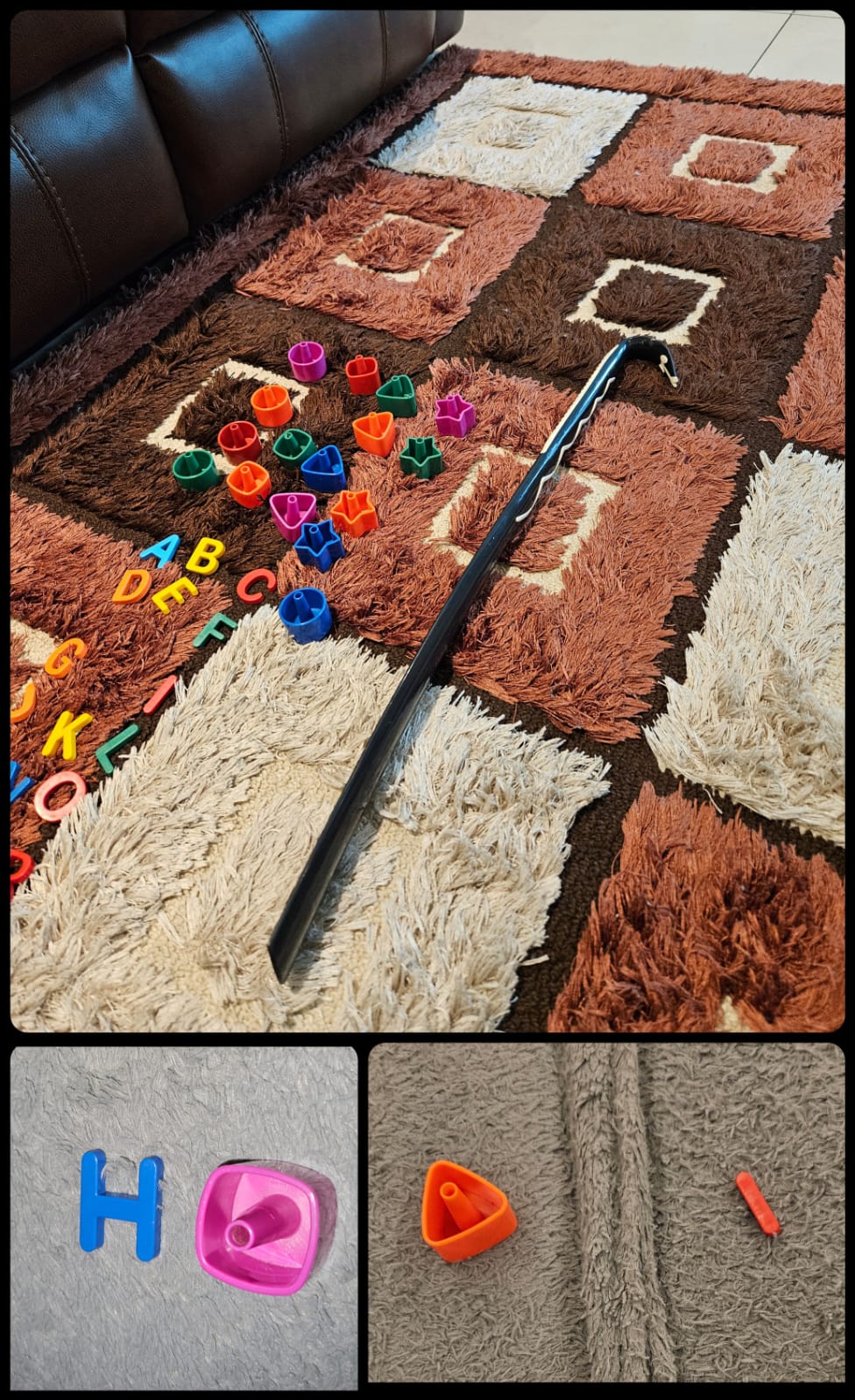 Arthur began using the shoe stick—the tool I use to reach things under the sofa—as a symbolic communication system. Handing me the stick became his self-authored way of saying: