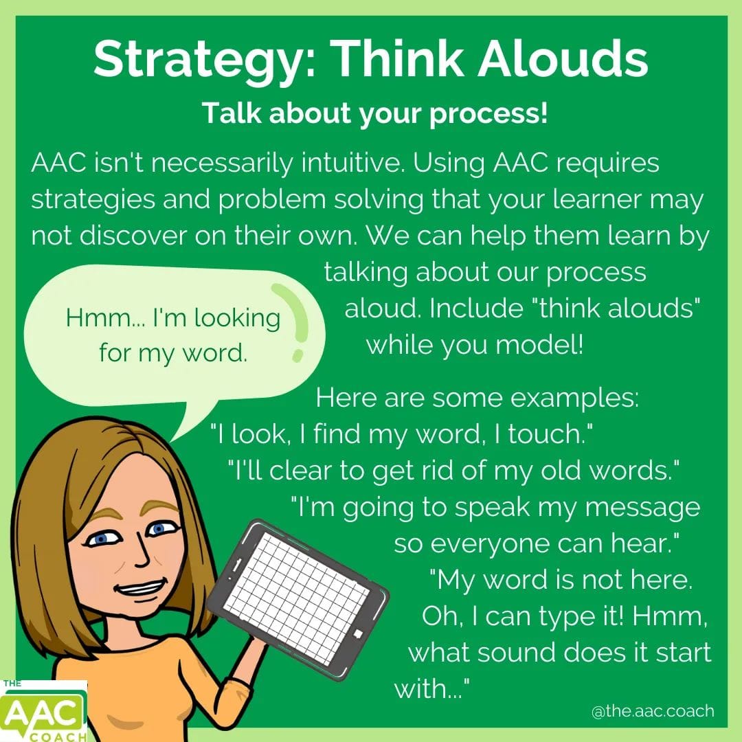 I then modelled language on his AAC device, thinking aloud as I navigated: