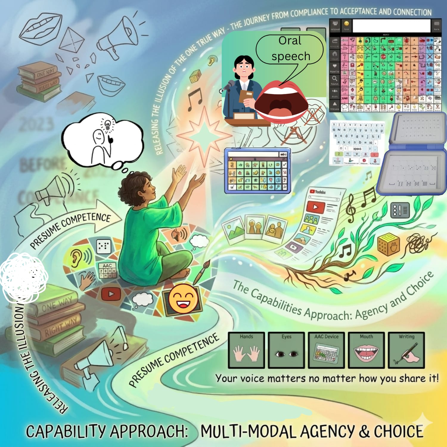 This perspective is also supported by the research Rethinking device abandonment: a capability approach focused model by Smidt and Pebdani (2023), which encourages us to stop viewing non-use of devices as failure. Instead, we must see it as a child choosing the modality that is quickest, easiest, and most meaningful for them. I no longer try to make Arthur fit into someone else’s idea of how he should communicate.