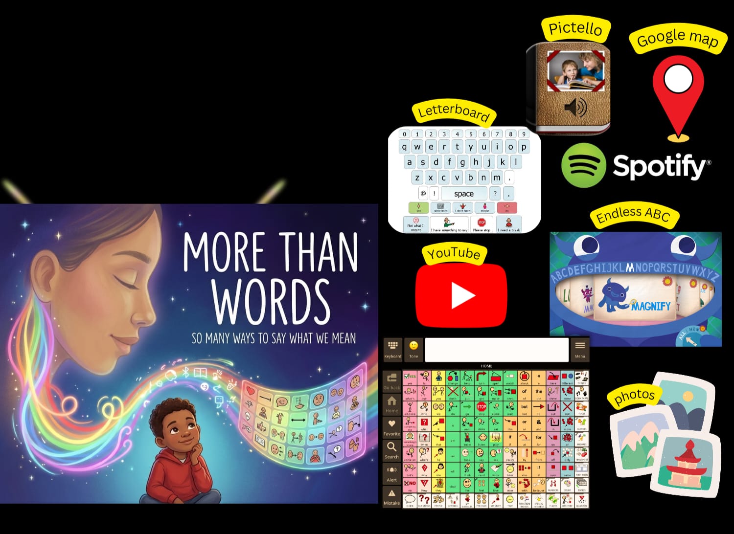 Using unconventional apps like Endless ABC / Endless Reader to communicate.